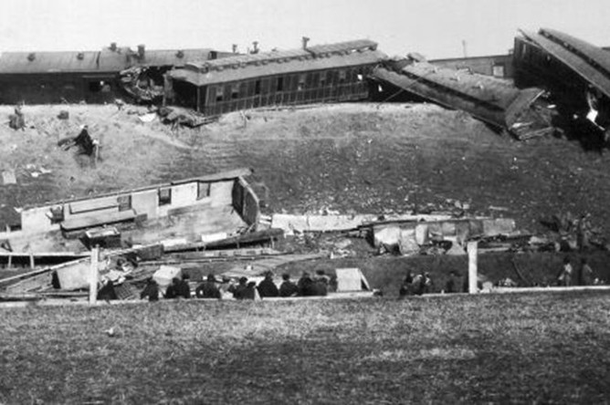 Вагон качнуло, лязгнул металл, все резко попадали на пол. Никто не понимал, что происходит. Царил хаос, паника, катастрофа!!! Рельсы разошлись, один из паровозов провалился между ними. Это спровоцировало сход десяти вагонов. Они падали с высокой насыпи.