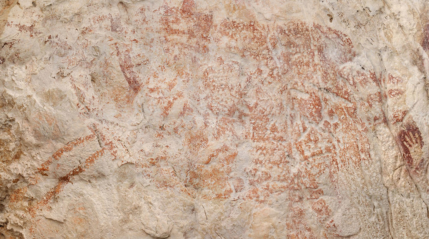 Минимальный возраст изображения крупного копытного, выполненного красной краской, оказался равен 40 тыс. лет, но может достигать и 53 тыс. лет. Это самое раннее во всем мире изображение, относящееся к фигуративной живописи — изображениям, сохраняющим сходство с реальными объектами. Одного возраста с ним оказались некоторые трафаретные изображения рук, нарисованные неподалеку.