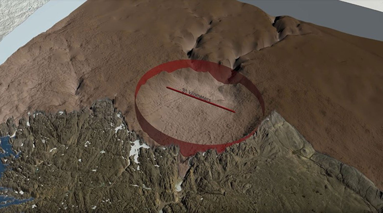 Группа исследователей из США, Дании, Франции, Германии и Великобритании еще в 2015 году проанализировала данные наблюдений с воздуха, собранные миссией IceBridge, которой руководит NASA, и данные с американских спутников Terra и Aqua и обнаружила подо льдом Гренландии кратер площадью больше Парижа и глубиной около 300 м — он оказался среди 25 самых огромных кратеров на Земле и, учитывая возможный период его появления, падение метеорита уже застали люди или их предки.