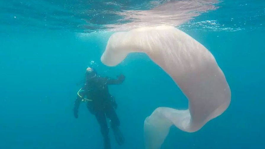 За время наблюдения «змей» медленно опустился с глубины 10 м на глубину 200 м. Дайверам пришлось следовать за ним.