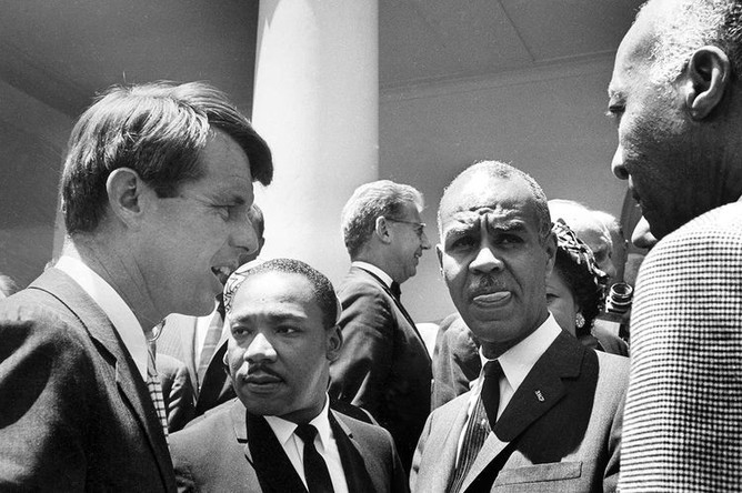 Слева направо: Роберт Кеннеди, Мартин Лютер Кинг, Рой Уилкинс и Аса Филип Рэндольф