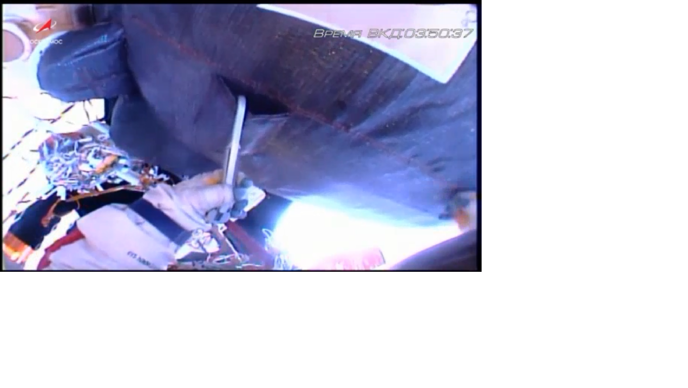 В космос летят ошметки экранно-вакуумной изоляции. Сергей предлагает подать ножницы. Пожалуй, это самый интересный выход в открытый космос с точки зрения зрителей. Судя по вздохам, Олег Кононенко быстро устает.