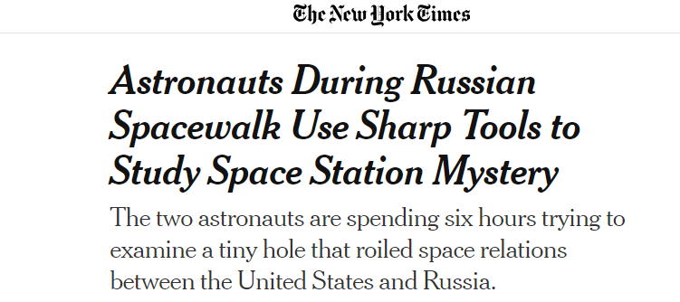 За операцией российских космонавтов на внешней стороне корабля «Союз» пристально следили не только в России, но и на Западе. С таким заголовком вышла накануне влиятельная американская газета New York Times.