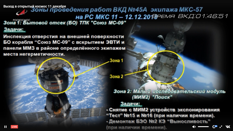 Пролить свет на происхождение дыры мог только выход в открытый космос: космонавты, осмотрев отверстие извне, попробуют взять пробы с внешней части отверстия. Из-за аварии 11 октября был нарушен весь план эксплуатации МКС, на говоря про то, что выход в открытый космос пришлось перенести. И вот этот день настал. Ждем выхода космонавтов!
