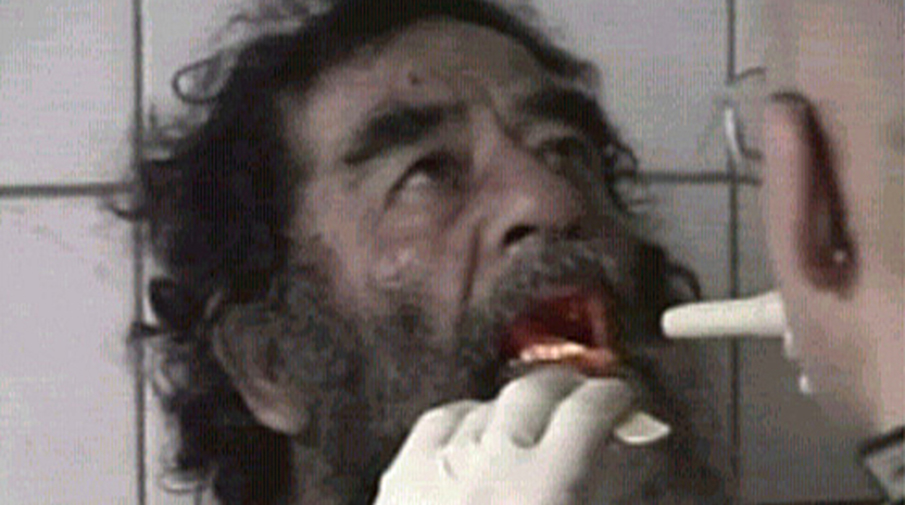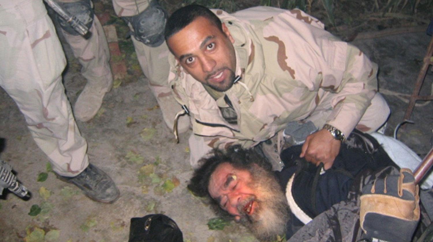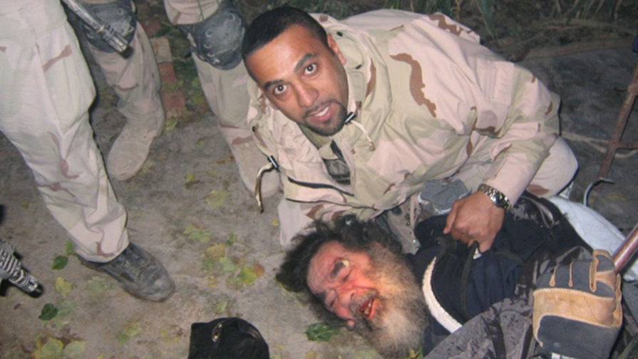 В отличие от операции по поимке «террориста №1» Усамы бен Ладена в 2011 году, которого убили во время нападения, в случае с задержанием Хусейна оружие не применяется. Измученный многомесячным пребыванием в подполье Саддам не оказал солдатам совершенно никакого сопротивления. При нем нет даже пистолета. Право, в этом дряхлом, заросшем старике с потерянным взглядом уже едва ли узнается лихой президент, когда-то моложаво гарцевавший на коне в кителе с иголочки и беретке.