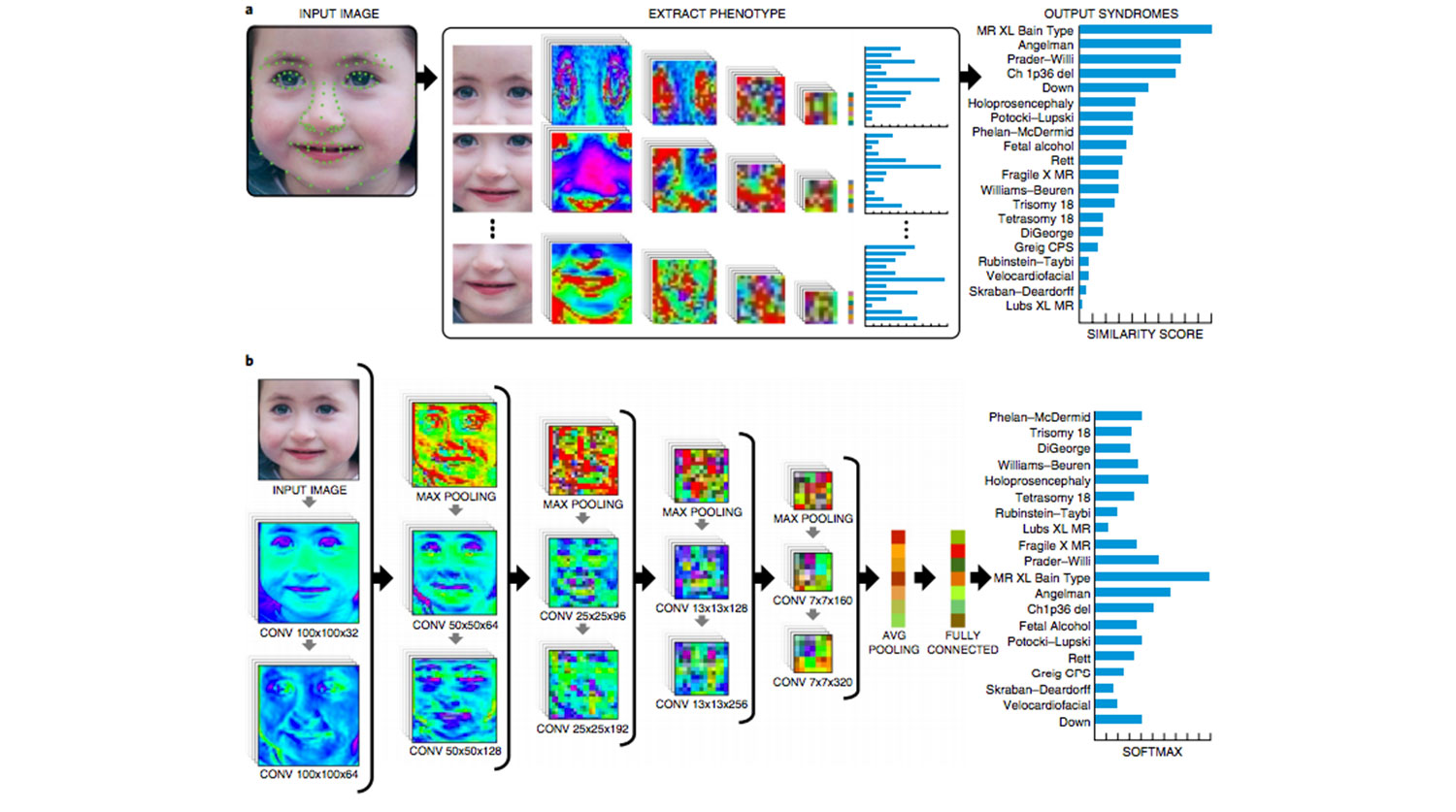 Исследователи из израильской компании FDNA, занимающейся фенотипированием с помощью искусственного интеллекта, разработали алгоритм DeepGestalt, способный по фотографии ребенка определить, есть ли у него генетическое заболевание. Они надеются, что программа станет альтернативой дорогим генетическим тестам, тем более что в выявлении ряда генетических отклонений она даже превзошла докторов. Исследование было опубликовано в журнале Nature Medicine.