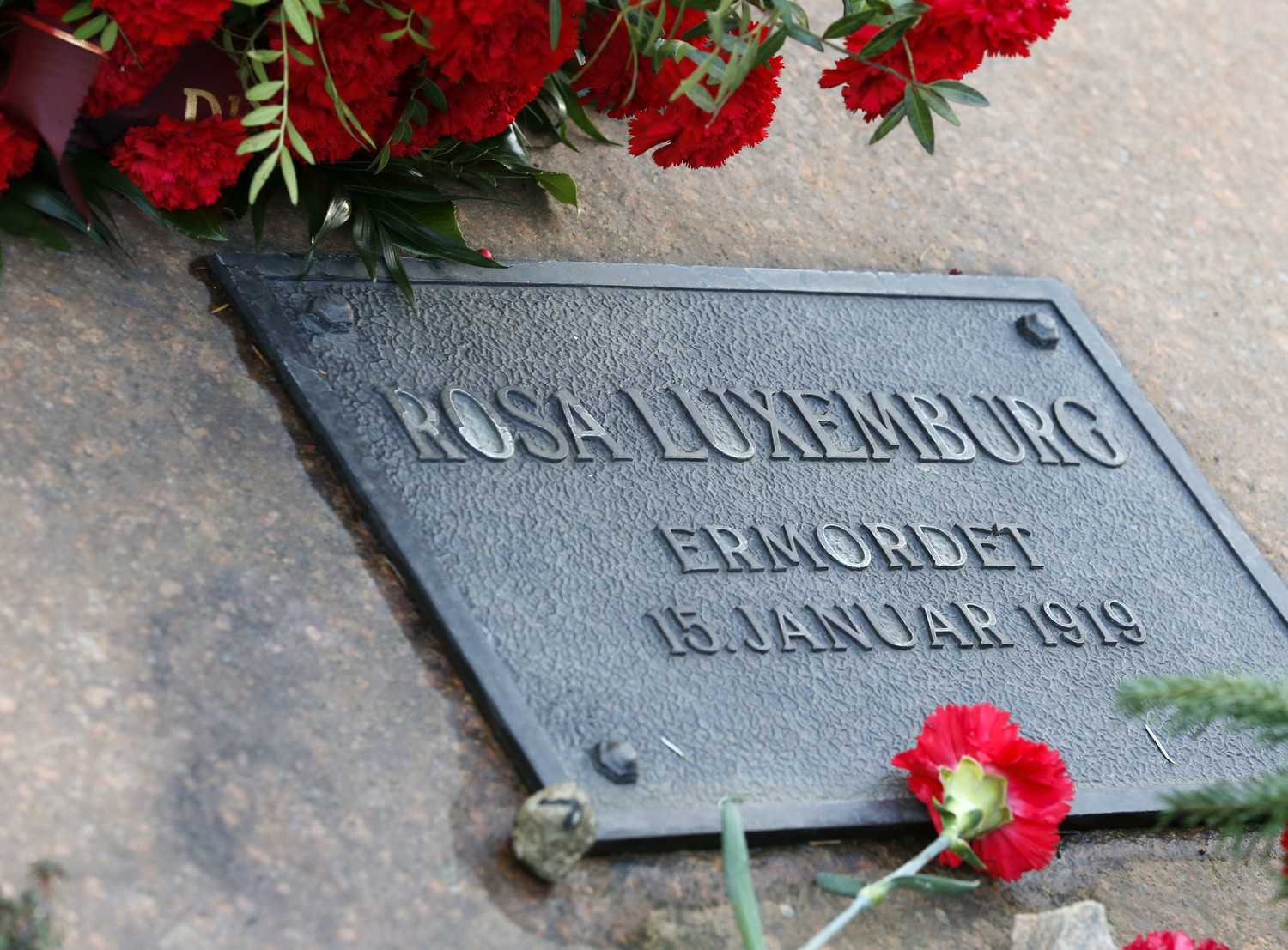 Табличка с датой смерти Розы Люксембург, к которой ежегодно приносят цветы немецкие коммунисты