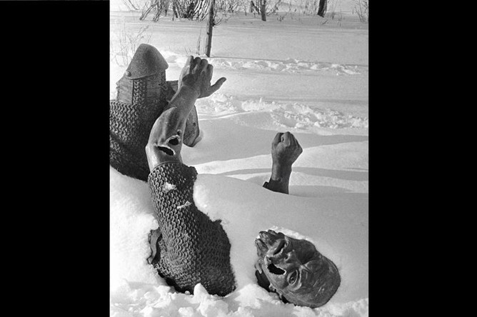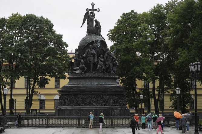Так выглядел памятник «Тысячелетие России» после освобождения Новгорода.