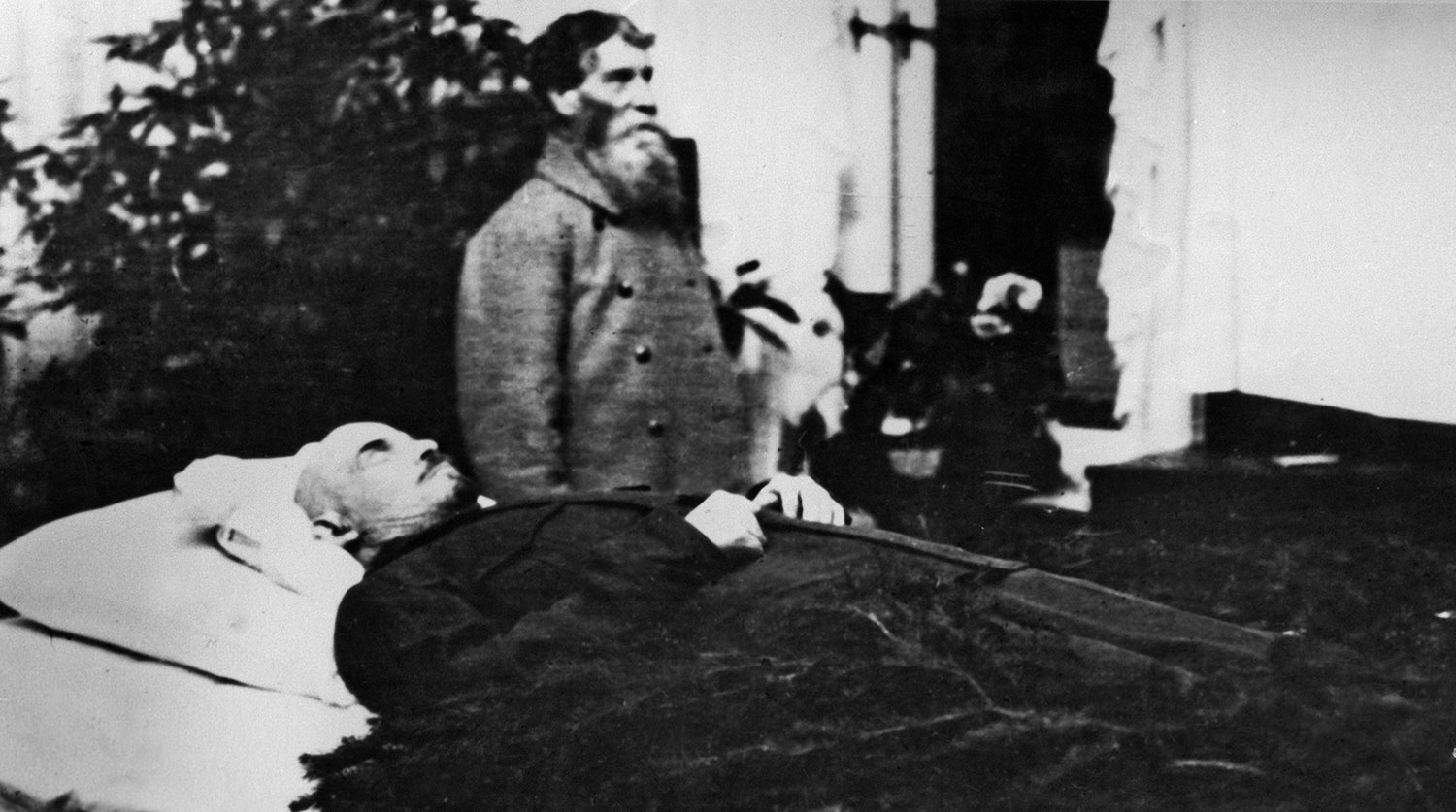 Владимир Ленин на смертном одре, на заднем плане Иосиф Сталин