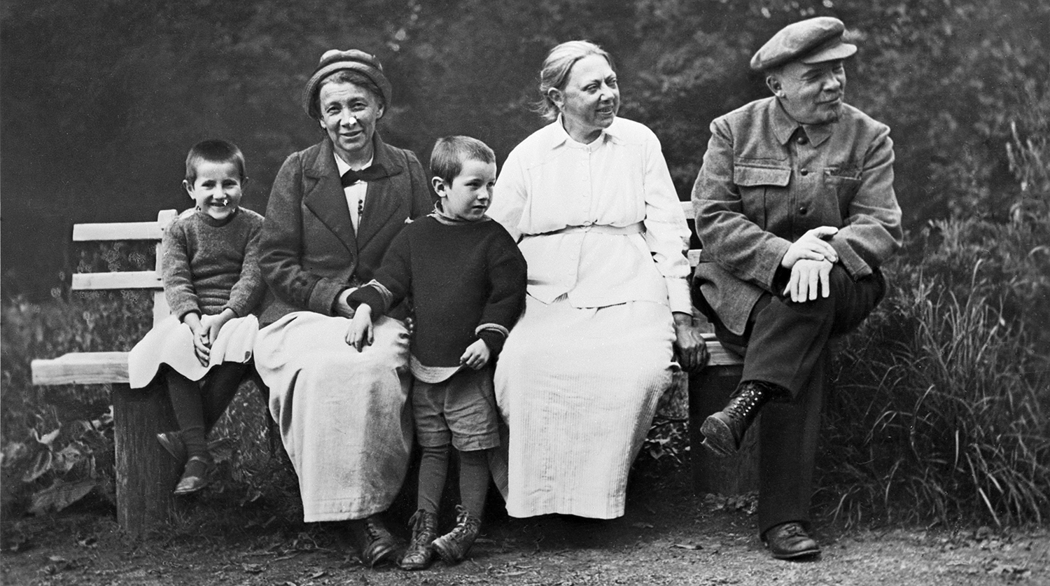 Старшая сестра Владимира Ленина Анна Елизарова-Ульянова, Надежда Крупская и сам Владимир Ленин в Горках, 1922 год