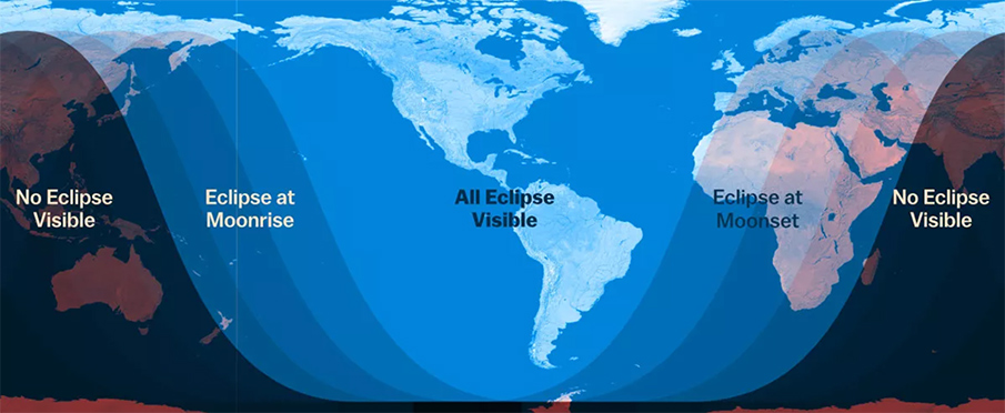 Луна в ходе своего движения по орбите погрузится в северную часть тени Земли на 1 час 03 минуты. Земная тень полностью затмит видимую поверхность Луны, придав спутнику красновато-бурый оттенок.