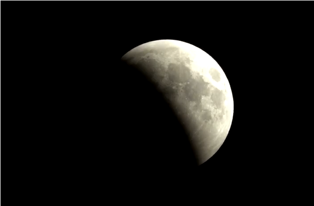 Луна начинает выходить из земной тени — конец полного затмения и начало его частных фаз. Постепенно становясь все ярче, затмившийся лунный диск будет принимать фазы, похожие на фазы Луны в течение месяца, но только меняться они будут гораздо быстрее.