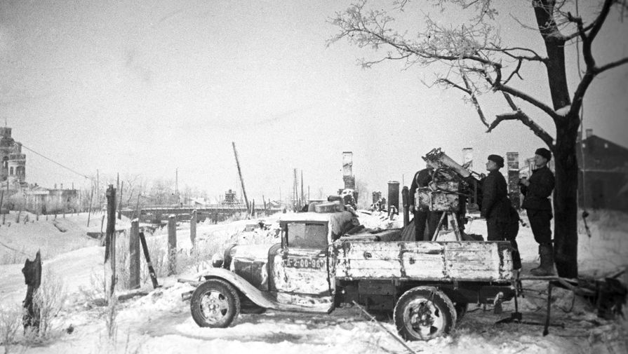 Борис Кудояров/РИА «Новости»А еще 20 января Красная армия водрузила Знамя Победы над новгородским кремлем. Советским воинам открылась здесь страшная картина немецких злодеяний: за время оккупации противник уничтожил множество русских исторических памятников, разорил музеи и храмы, разрушил монумент «Тысячелетие России». Все это с колоссальным трудом пришлось потом восстанавливать. Освобождение Новгорода мы тоже реконструировали в нашем онлайне: если хотите узнать, как войска Волховского фронта брали древнюю святыню, вам — сюда.