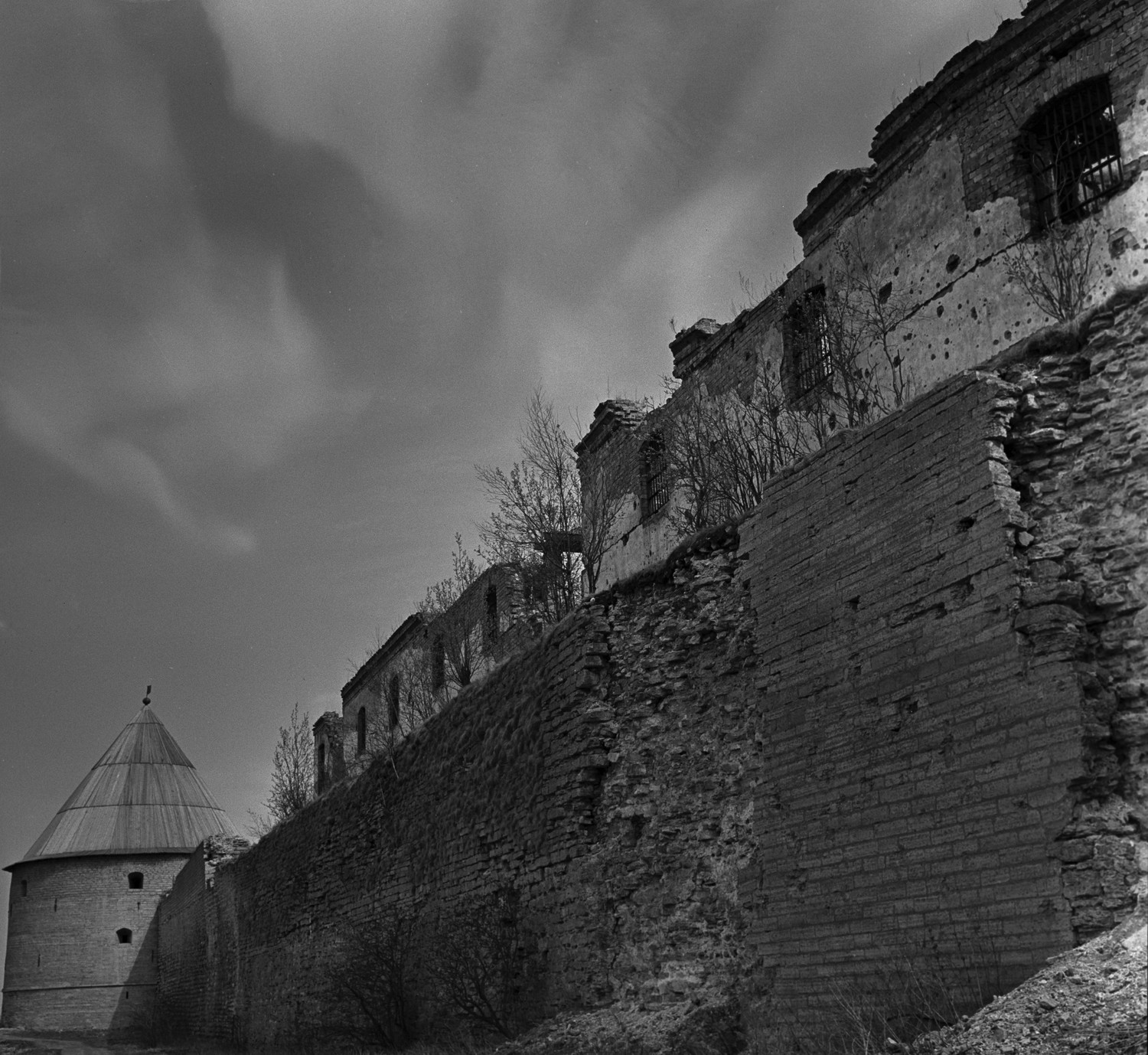 Полуразрушенная стена и Королевская башня Петрокрепости на Ореховом острове в устье Невы