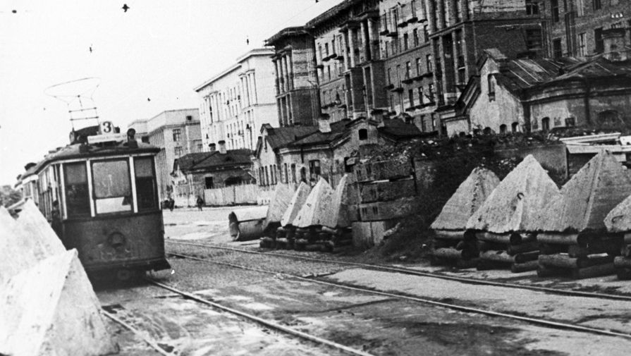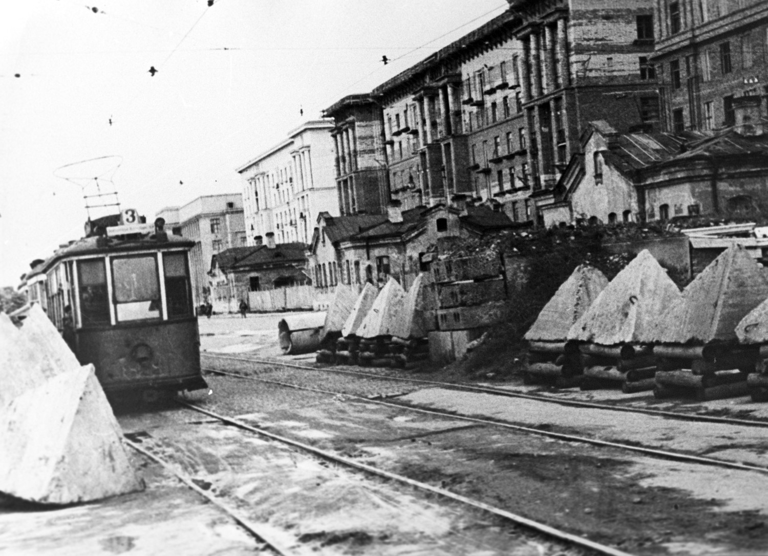 Противотанковые надолбы на улицах блокадного Ленинграда