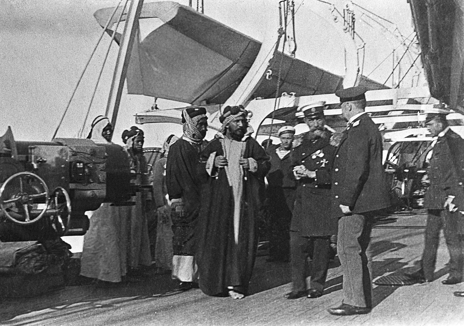 Приезд сына кувейтского шейха Мубарака на русский крейсер «Варяг». 1901 год.