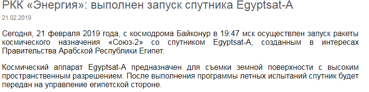 Поэтому пожелаем египетским налогоплательщикам, и уже во вторую очередь отечественным ракетчикам успешного запуска!