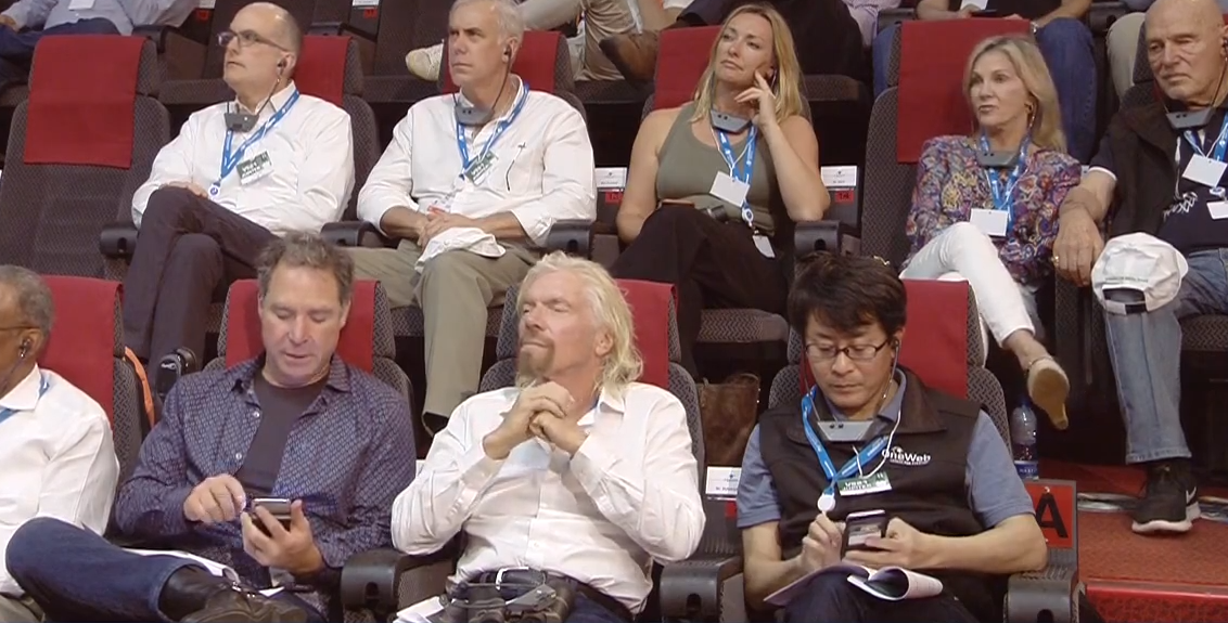 Интересно, что за стартом российской ракеты следит известный «ракетчик», миллиардер Ричард Брэнсон, сидящий в первом ряду зрителей в зале для гостей.