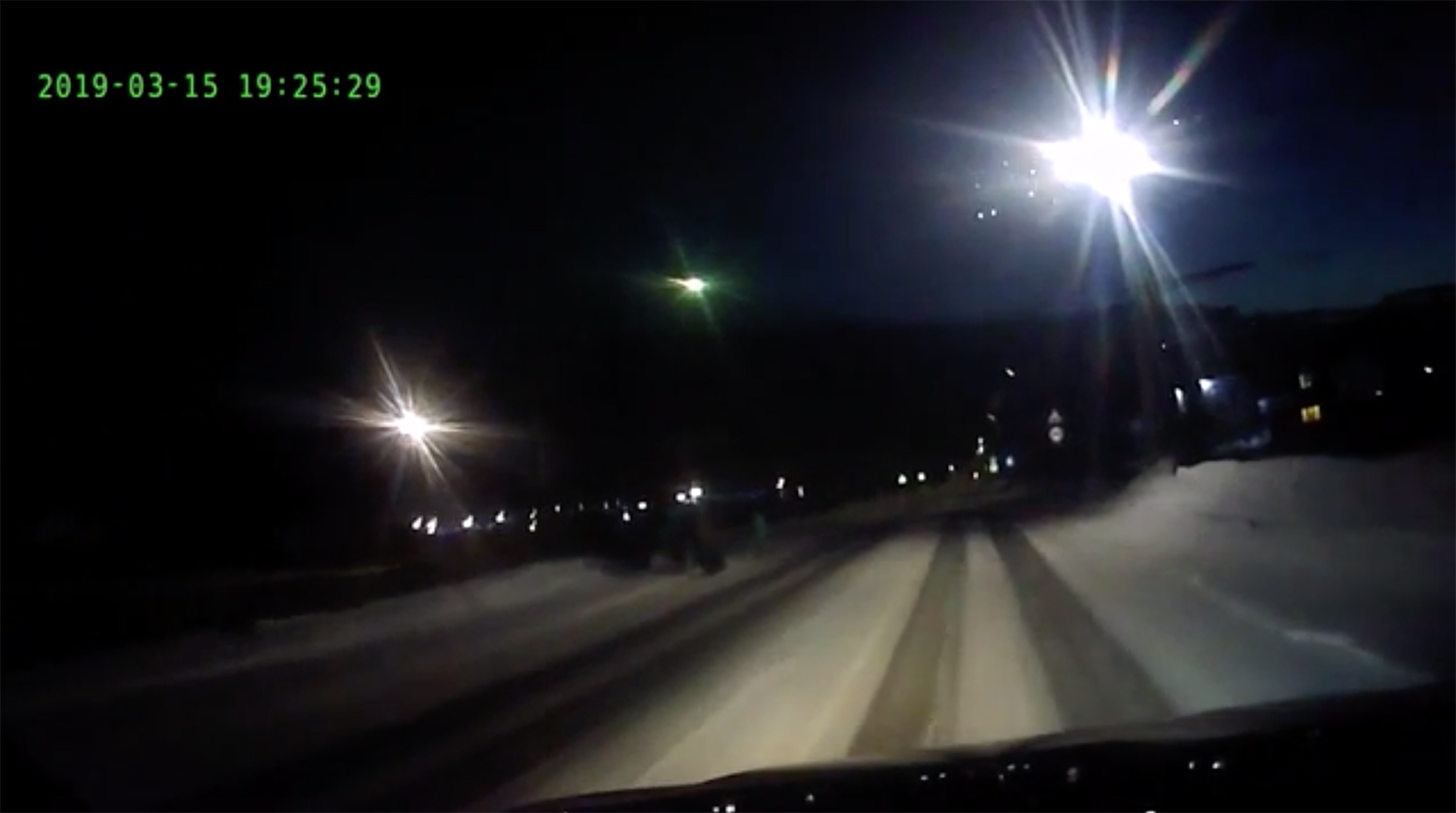Тогда же видеорегистратором одного из автолюбителей Мурманской области было заснято движение по небу яркого светящегося объекта. На видео заметно, как загадочное тело пролетело над трассой по диагонали и, предположительно, соприкоснулось с землей на неосвещенном участке за обочиной, вдали от машины, из которой велась съемка. Фрагмент записи с указанным эпизодом быстро набрал популярность в интернете. По мнению председателя мурманского астрономического общества «Орион» Виктора Трошенкова, неизвестным объектом мог быть спорадический болид.