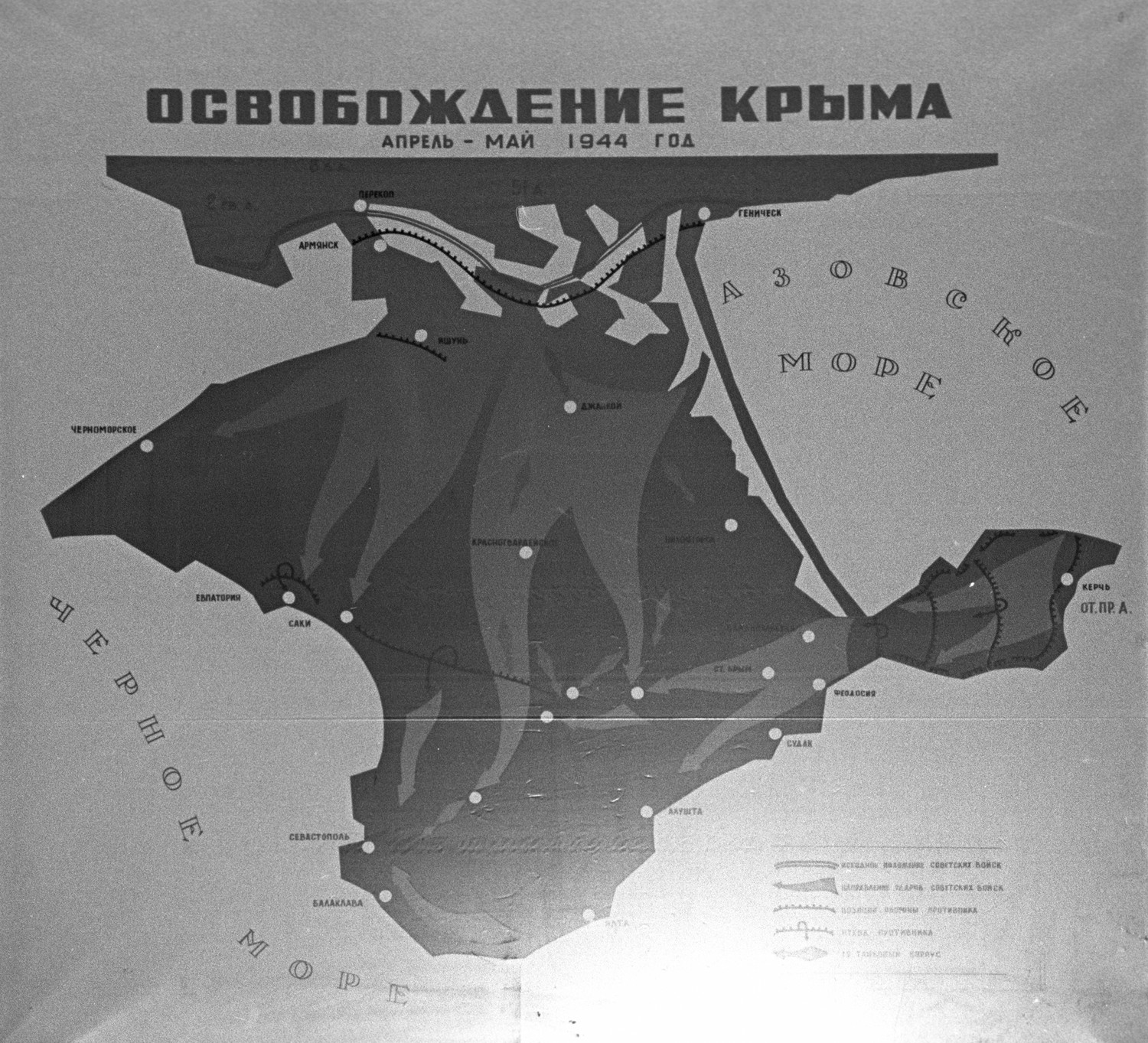 Великая Отечественная война. Карта освобождения Крыма весной 1944 года.