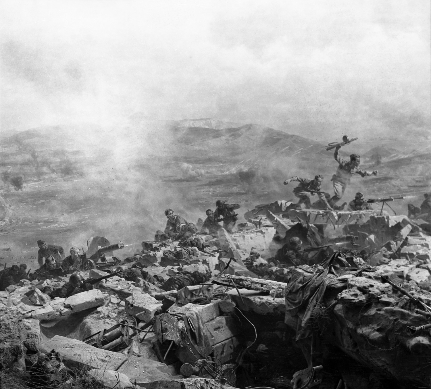 Фрагмент диорамы «Штурм Сапун-горы 7 мая 1944 года» в Государственном музее героической обороны и освобождения Севастополя, выполненная студией военных художников имени М. Б. Грекова.