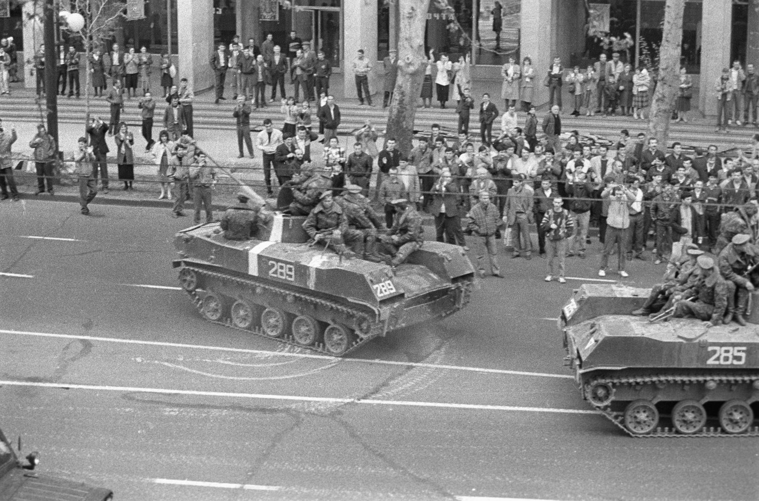 Алексей Курбатов/РИА «Новости»Напряженная ситуация в Грузинской ССР складывалась не один день. Все началось в середине марта, когда 30 тысяч абхазов на сходе в Лыхны потребовали выхода Абхазской АССР из состава Грузии и восстановлении для нее статуса союзной республики, утраченного 19 февраля 1931 года. Понижение Абхазии объяснялось тогда «реорганизацией госаппарата автономных республик и областей». Теперь в автономии хотят либо стать 16-й союзной республикой, либо присоединиться к РСФСР. Жить с грузинами больше не желают. Реакцией на устремления абхазов стала резкая активизация грузинского националистического движения во главе со Звиадом Гамсахурдией. Под его руководством были созданы карательные отряды из вооруженных крепких мужчин. Боевики должны были отправиться в Сухуми для «наведения порядка». Там произойдут ожесточенные столкновения с местными, будут погибшие.