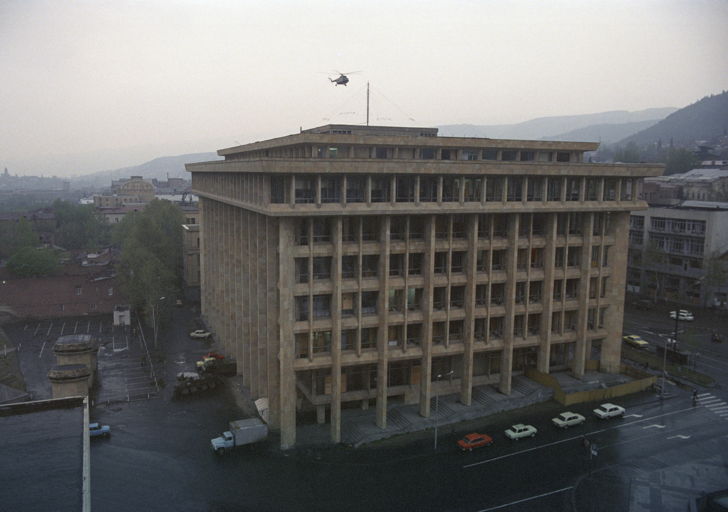 После подавления митинга у Дома правительства в Тбилиси 9 апреля 1989 года. Патрульный вертолет над Центральным телеграфом.