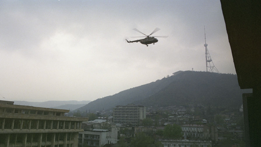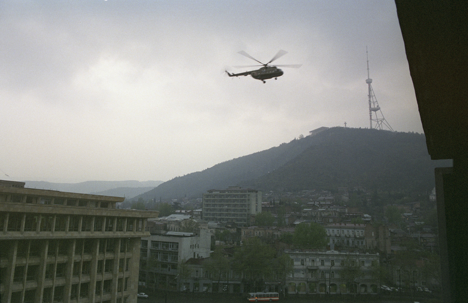 После подавления митинга у Дома правительства в Тбилиси 9 апреля 1989 года. Патрульный вертолет над городом.