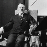 Наиболее ценным снимком из коллекции считается тот, на котором Гитлер запечатлен в мягком кресле рядом с немецкой овчаркой. Предположительно, фотография датируется 1923 годом и может считаться одним из самых ранних известных снимков будущего диктатора. В момент позирования перед фотографом нацисту было около 34 лет. Для памятного фото он облачился в брюки в мелкую полоску и темный пиджак, на который нацепил маленькую булавку в виде свастики. Волосы Гитлер по своему обыкновению зачесал назад. Антуража добавляет пианино на заднем плане.
