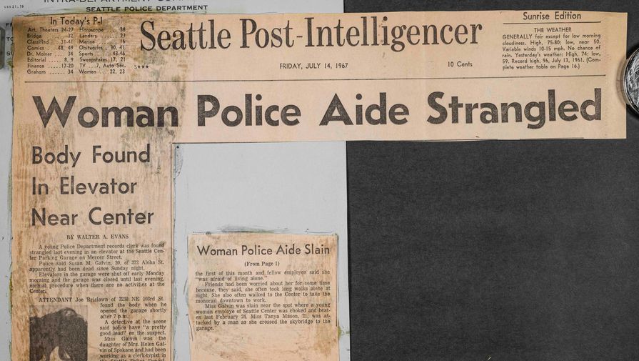 Летом 1967 года на территории выставочного центра Сиэтла, в лифте на парковке, было найдено тело 20-летней Сьюзан Гэлвин. Девушка была изнасилована, а затем задушена. Поиски начались после того, как Гэлвин не вышла вечером на работу в полицейском архиве Сиэтла.