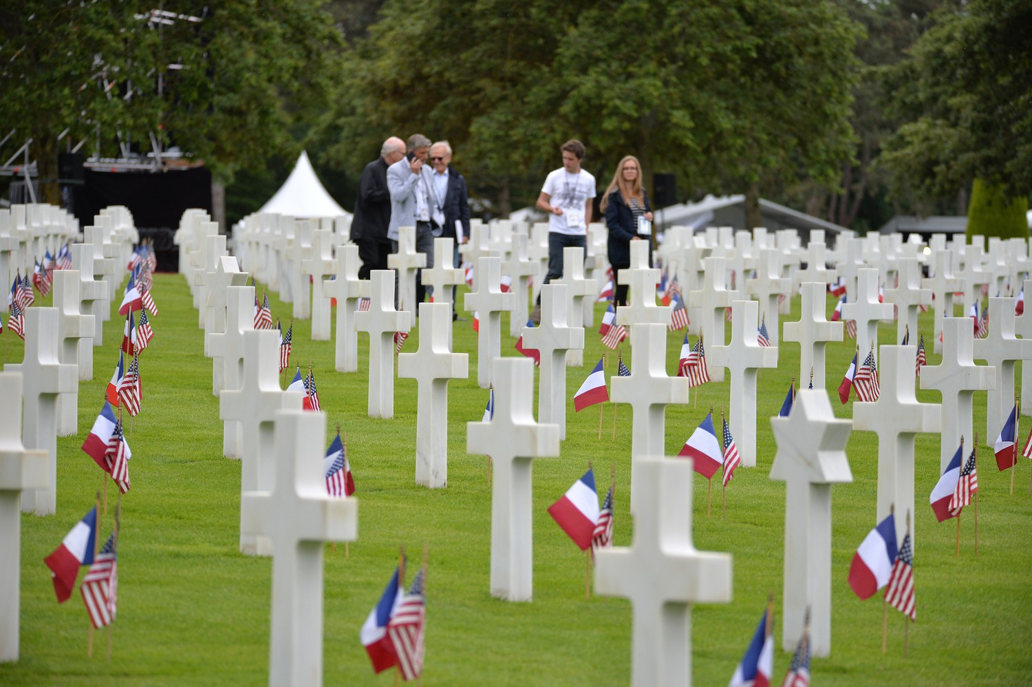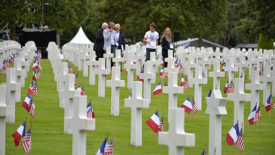 Американское кладбище рядом с пляжем «Омаха-Бич» на севере Нормандии (Франция) близ города Лонгвиль