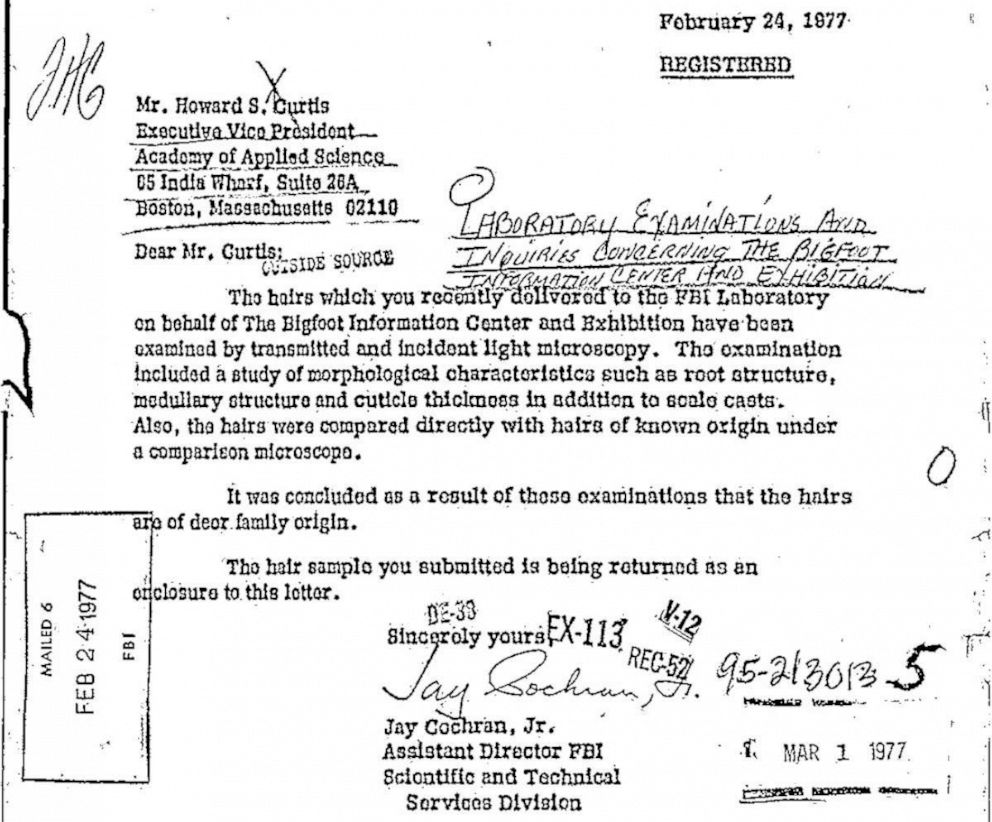 «Прошу вас любезно, чтобы внести ясность, отныне и всегда информировать нас, если ФБР будет исследовать волосы, которые могут принадлежать Бигфуту. Когда это произойдет, если произойдет, и каковы будут результаты, — писал Берн в письме, датированном 26 августа 1976 года. — Пожалуйста, имейте в виду, что наши исследования здесь серьезны.