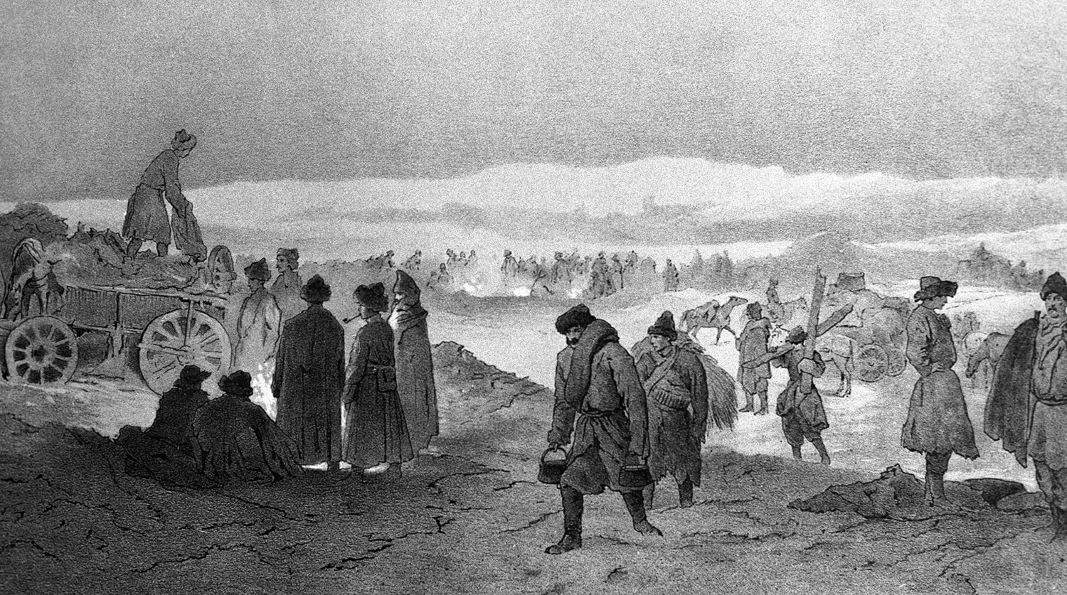 Репродукция тонированной литографии «Зимняя экспедиция в Чечне на Кавказе во время Кавказской войны 1840-50 годов»
