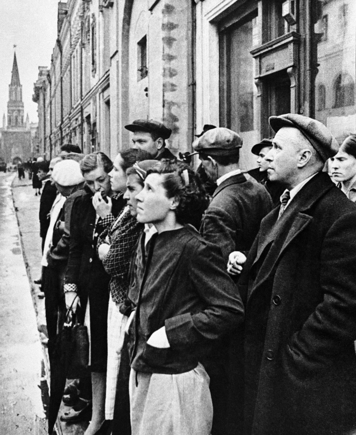 Москвичи слушают сообщение о нападении гитлеровской Германии на нашу Родину