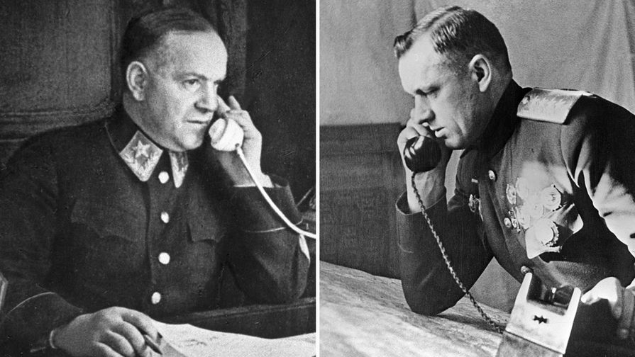 Маршал Советского Союза Георгий Жуков в начале 1943 года и генерал армии Константин Рокоссовский в начале 1944 года, коллаж «Газеты.Ru»