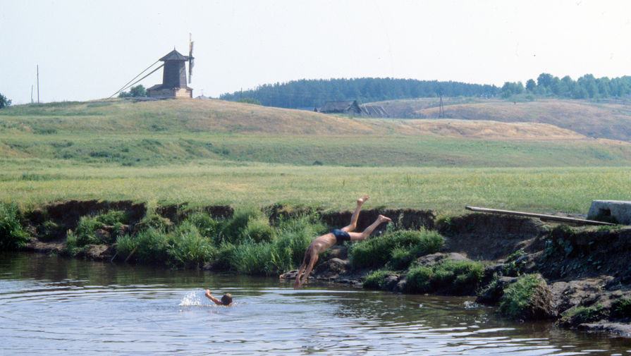 Ветряная мельница в селе Нижняя Синячиха Алапаевского района. Нижне-Синячихинский музей-заповедник деревянного зодчества и народного искусства. 1988 год