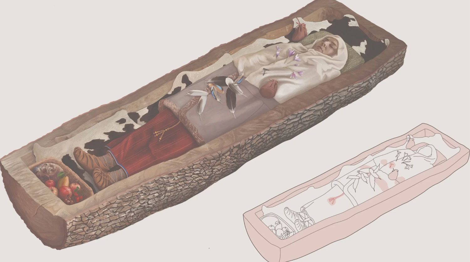 Захоронению примерно 2200 лет. На момент смерти кельтке было около 40 лет. Ученым удалось установить, что женщина принадлежала к привилегированному слою современного ей общества. Ее положили в выдолбленный из цельного ствола дерева гроб в шерстяном платье, окутанном шалью, верхней одежде из овечьей кожи и с красивым ожерельем из стекла и янтаря на шее. Особенное впечатление на археологов произвела застежка на этом украшении: на обоих концах ожерелья находился зажим наподобие броши. Другие застежки скрепляли ее одежду.