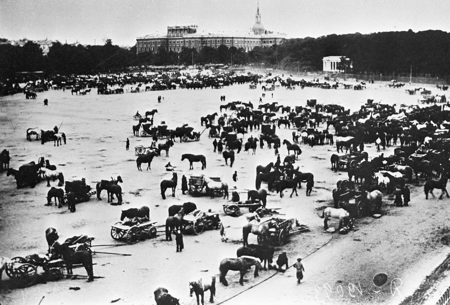 Прием лошадей для действующей армии в первые дни мобилизации
