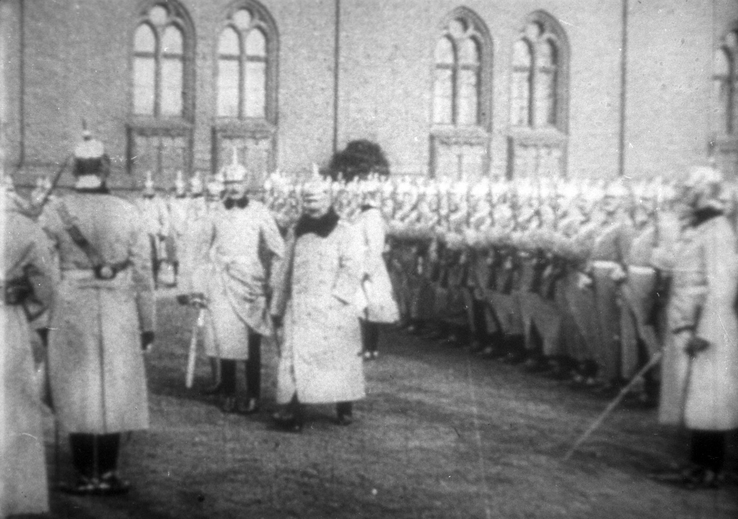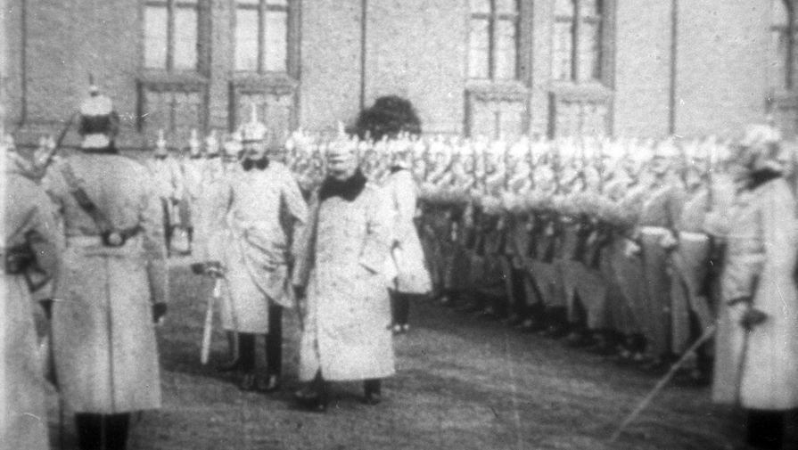 Германский император Вильгельм (в центре) принимает парад войск. 1914 год.