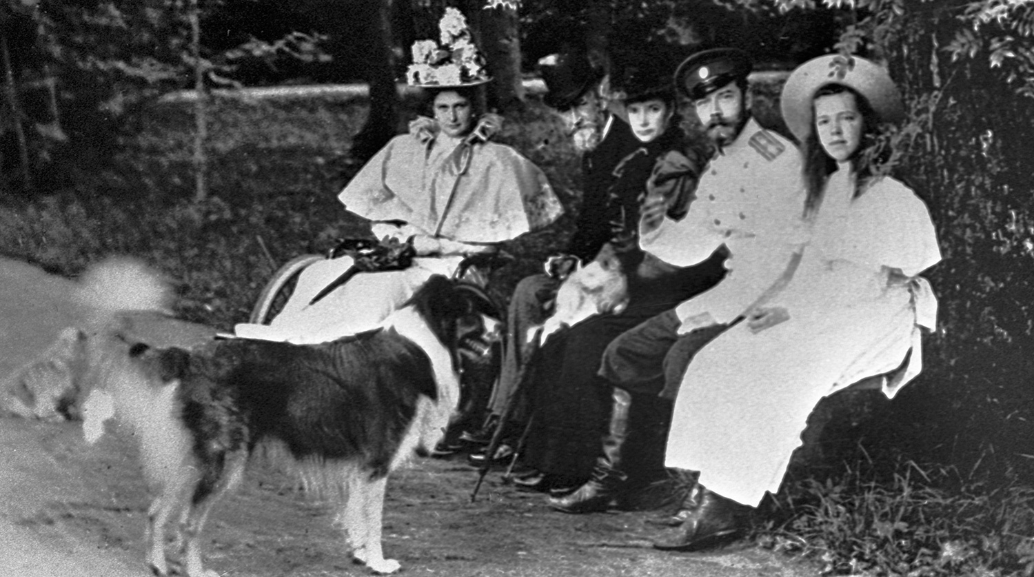 Николай II, империатрица Александра Федоровна (первая слева) и великая княгиня Ольга Александровна на прогулке