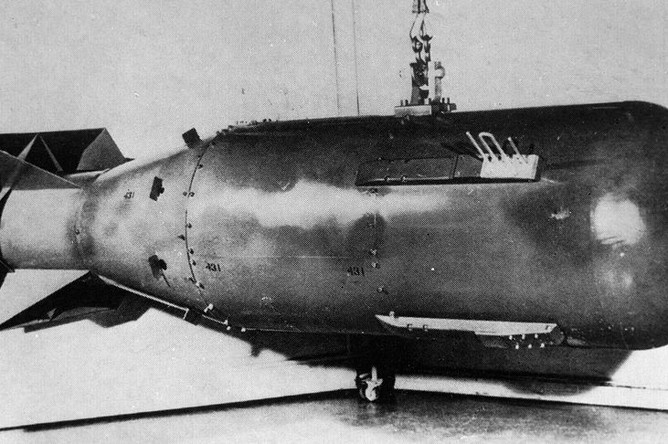 «Фактически же разведывательные самолеты выполняли двойную задачу, — продолжал Лоуренс. – Во-первых, они должны были оказывать чисто психологическое воздействие на жителей этого города и трех других городов, избранных объектами атомной бомбардировки – Кокуру, Нагасаки и Ниигату, — приучая их к тому, что соединение из трех самолетов, летящее на большой высоте – примерно в девять тысяч метров, не сбрасывает мощные бомбы. Во-вторых, в этих полетах группа самых опытных бомбардиров обучалась исключительной точности бомбометания. Бомбы, которые сбрасывали «разведывательные» самолеты, были точными копиями атомных бомб: их размеры, форма, вес полностью соответствовали атомной бомбе, только вместо атомного заряда в них находилось небольшое количество обычной взрывчатки. Модели атомных бомб сбрасывали с той же высоты, с которой нужно было сбросить настоящую бомбу, т. е. гораздо больше той, к которой привыкли наши бомбометатели, поэтому и требовалась дополнительная тренировка».