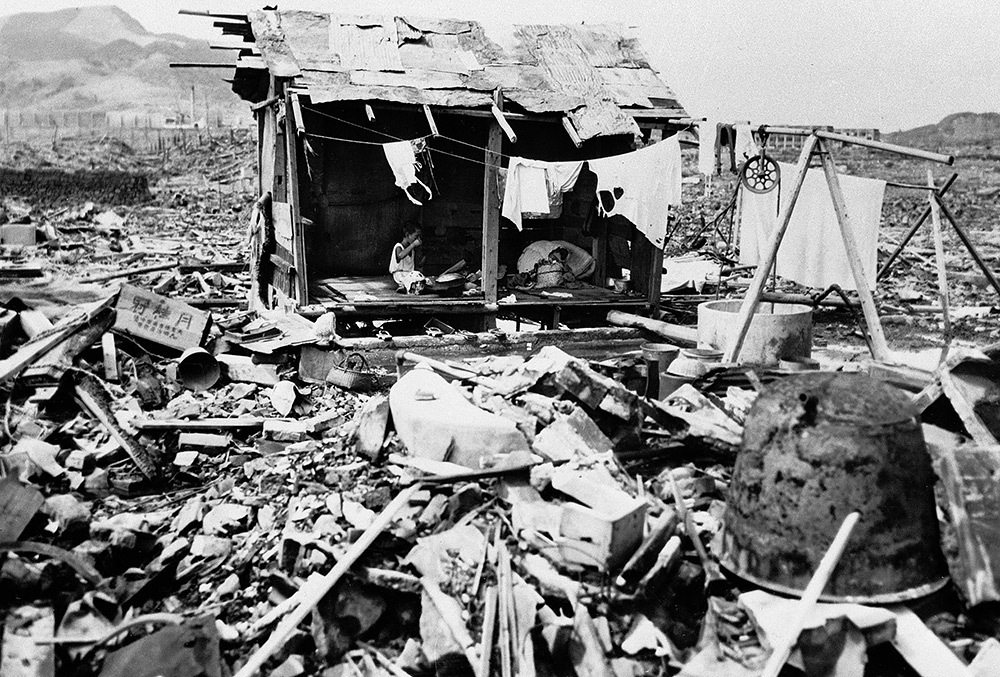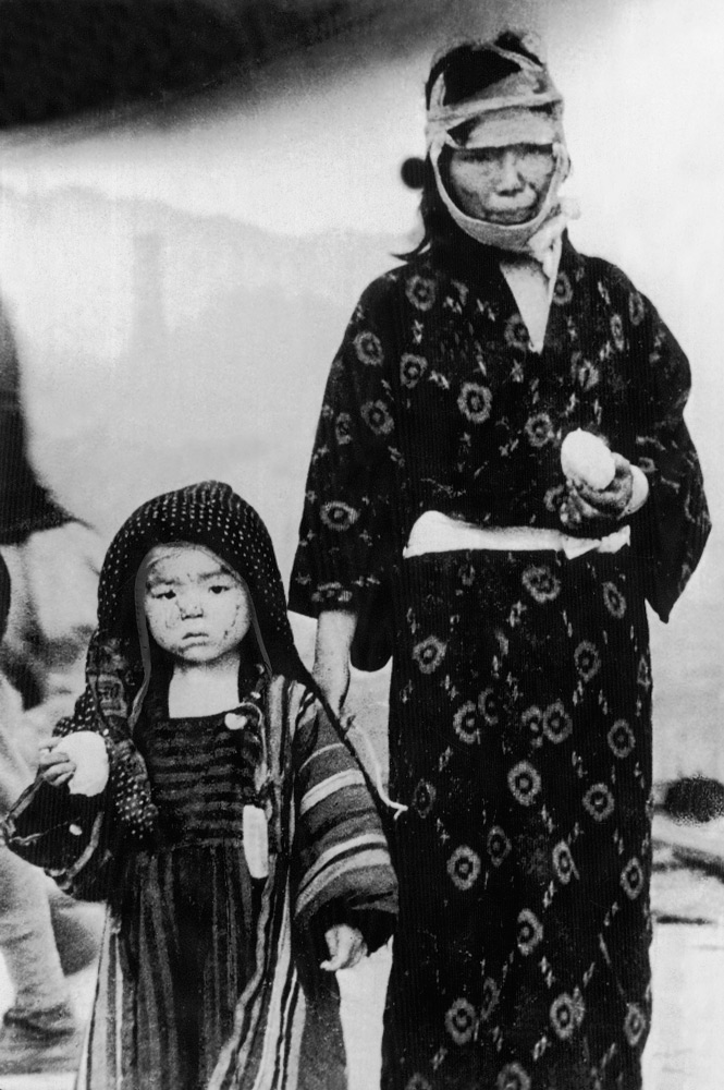 Мать и ребенок, выжившие после бомбардировки Нагасаки 9 августа 1945 года