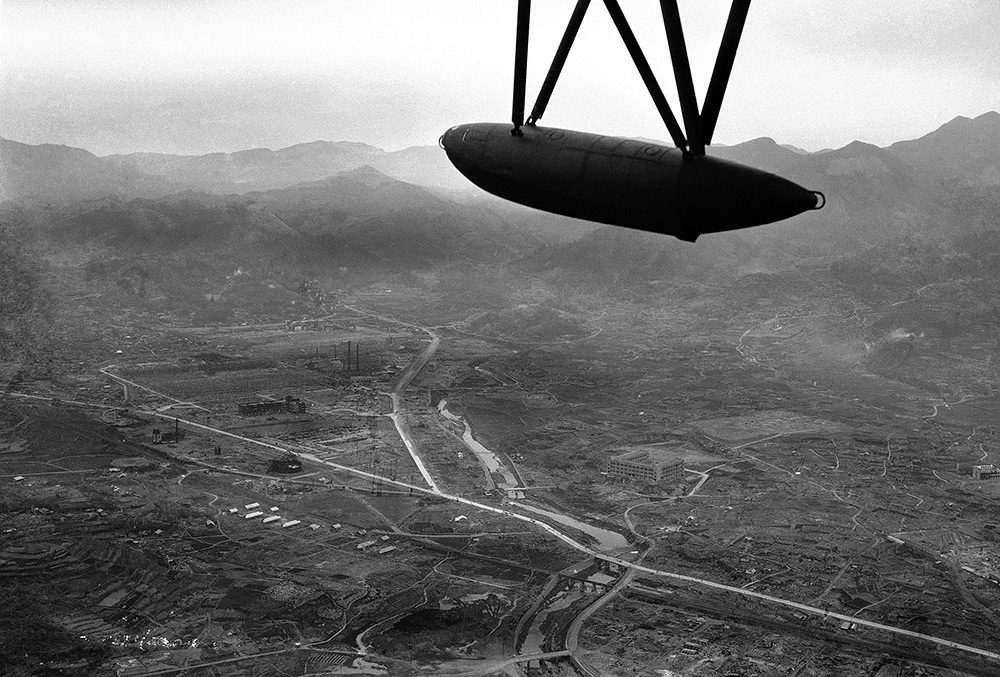 Bockscar с Суини и «Толстяком» уже над Нагасаки. Здесь городская территория также закрыта облаками. Выхода нет, и командир заход на цель по радару.