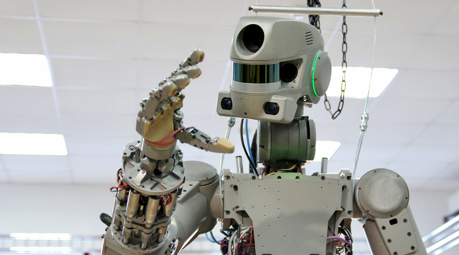 Александр Овчаров/РИА «Новости»«Обучением робота занимаются программисты, порядка пяти человек. Пока у робота нет искусственного интеллекта, пока он может только общаться с космонавтами. Такого, чтобы он что-то взял и починил – этого не будет, это опасно, — рассказал перед полетом Евгений Дудоров, исполнительный директор «Андроидная техника».