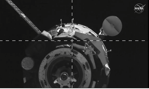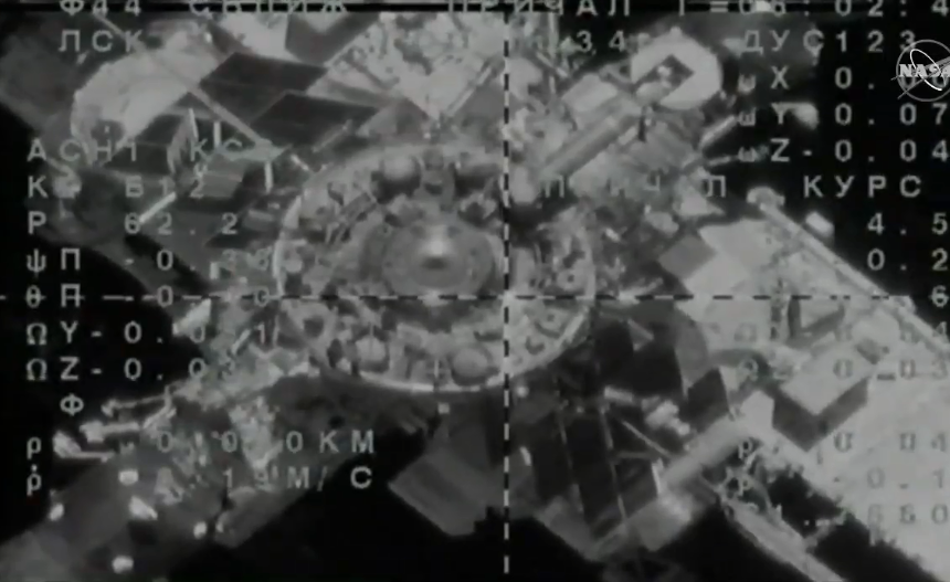 В настоящее время экипаж выполняет операции по подготовке к открытию переходных люков между кораблём и станцией.
