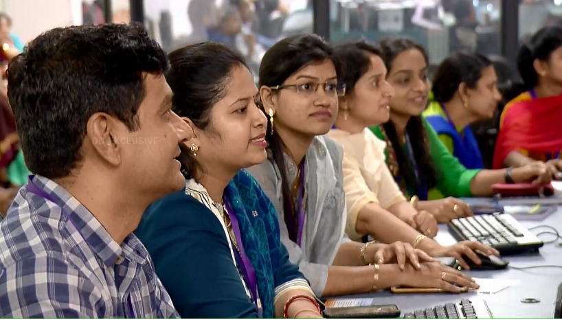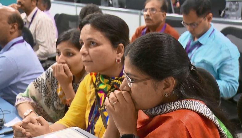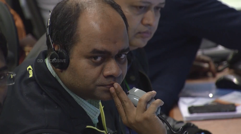 Маневр снижения начнется уже через несколько минут. Трансляция из ЦУПа началась и мы можем насладиться национальным колоритом обстановки! В посадке участвуют красиво одетые индийские женщины.