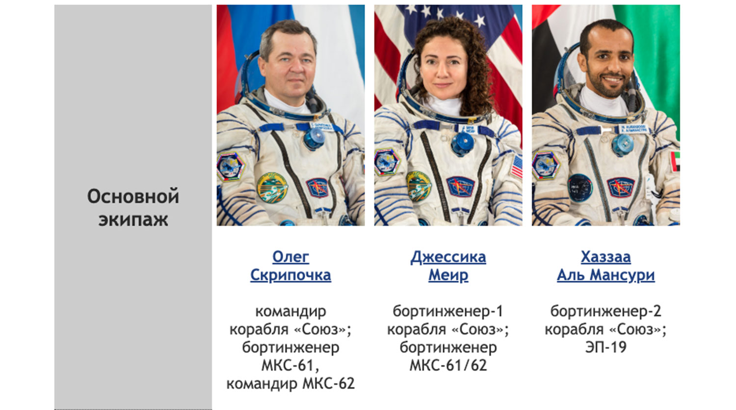Хаззаа Аль Мансури проведет на МКС всего 8 дней и вернется на землю 3 октября. «Это стандартная программа для экспедиции посещения», — пояснил Игнат Игнатов ведущий специалист по подготовке экипажей ЦПК.