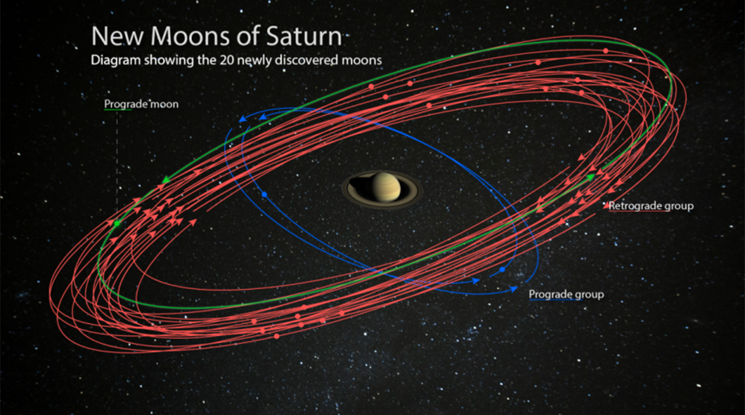 «Изучение орбит этих лун может раскрыть их происхождение, равно как и информацию об условиях вокруг Сатурна на время их образования», — пояснил Шеппард. Внешние спутники Сатурна можно условно разделить на три группы по тому, под каким углом наклонена их орбита. Орбиты двух новых наклонены под углом 46 градусов, их включили в группу инуитов, названную в честь эскимосской народности. Ученые считают, что раньше они были одним телом, которое распалось на два. Ретроградные спутники ученые отнесли к так называемой скандинавской группе.