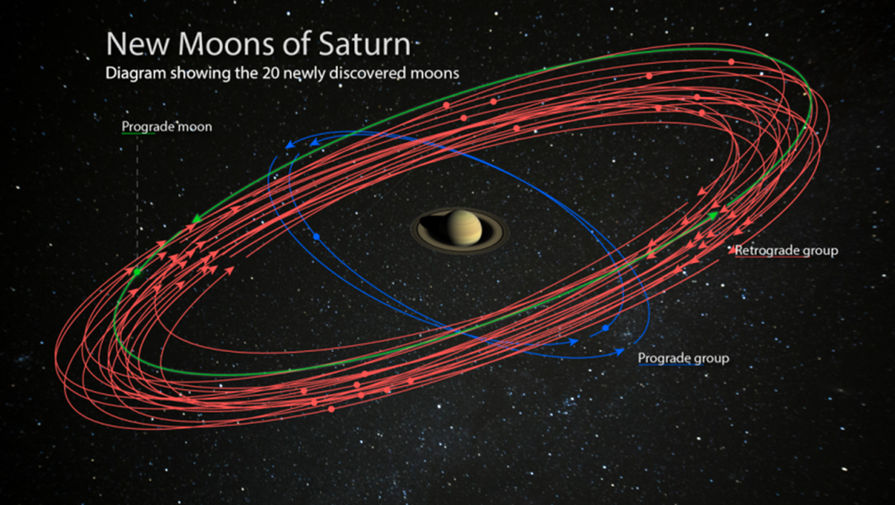 Ученые напомнили, что рекорд числа обнаруженных спутников Юпитеру принадлежал с конца 1990-х годов. Каждый из новых спутников в среднем имеет порядка пяти километров в диаметре. 17 вращаются в сторону, противоположную вращению планеты, как говорят астрономы, обладают ретроградным движением. Три спутника вращаются сонаправленно с Сатурном. Две из таких лун находятся ближе к планете, но тем не менее, совершают оборот вокруг нее за целых два года. Более удаленные ретроградные спутники и один, двигающийся сонаправленно,