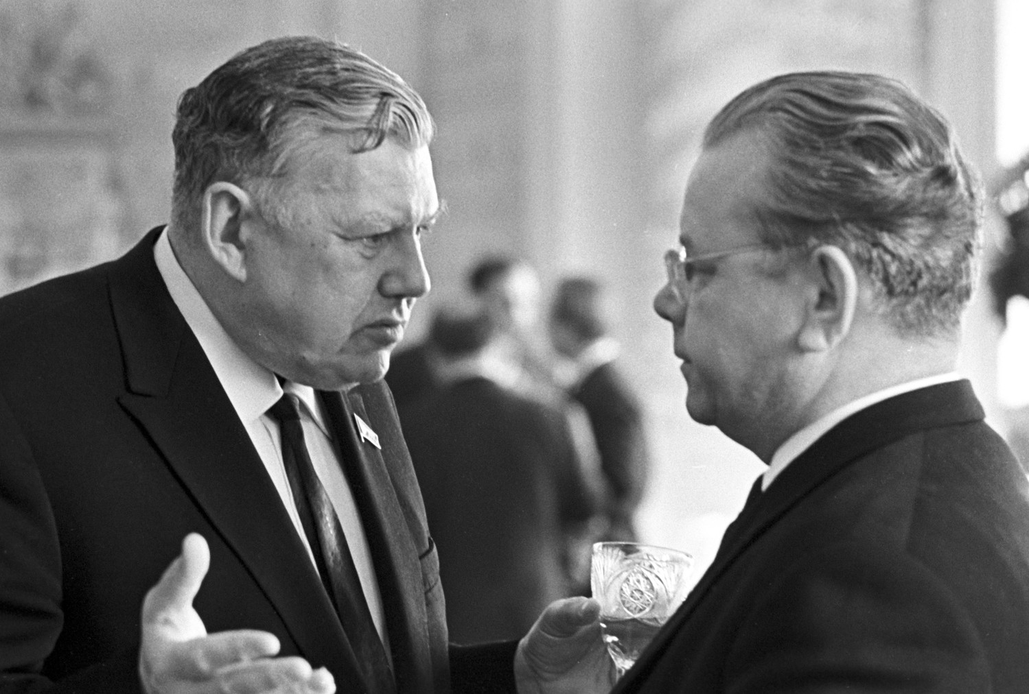 Первый заместитель председателя Бюро ЦК КПСС по РСФСР Андрей Кириленко (справа) и председатель правления Союза писателей РСФСР Леонид Соболев.